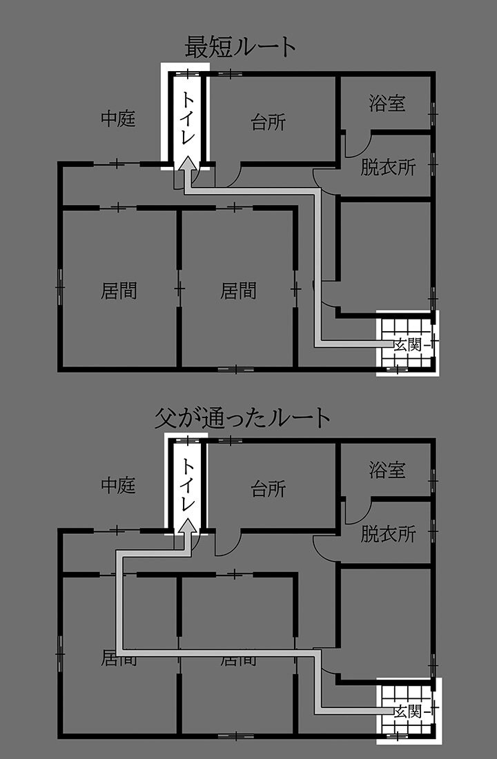 「玄関からトイレに行くのであれば、廊下から行った方が早い。居間を通ったのは明らかに遠回りです。なぜそのルートを選んだのでしょう?」