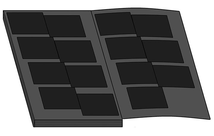見開きいっぱいに、長方形の紙が15枚貼られている。すべて焦げてしまっているが、サイズから考えて写真に違いない。