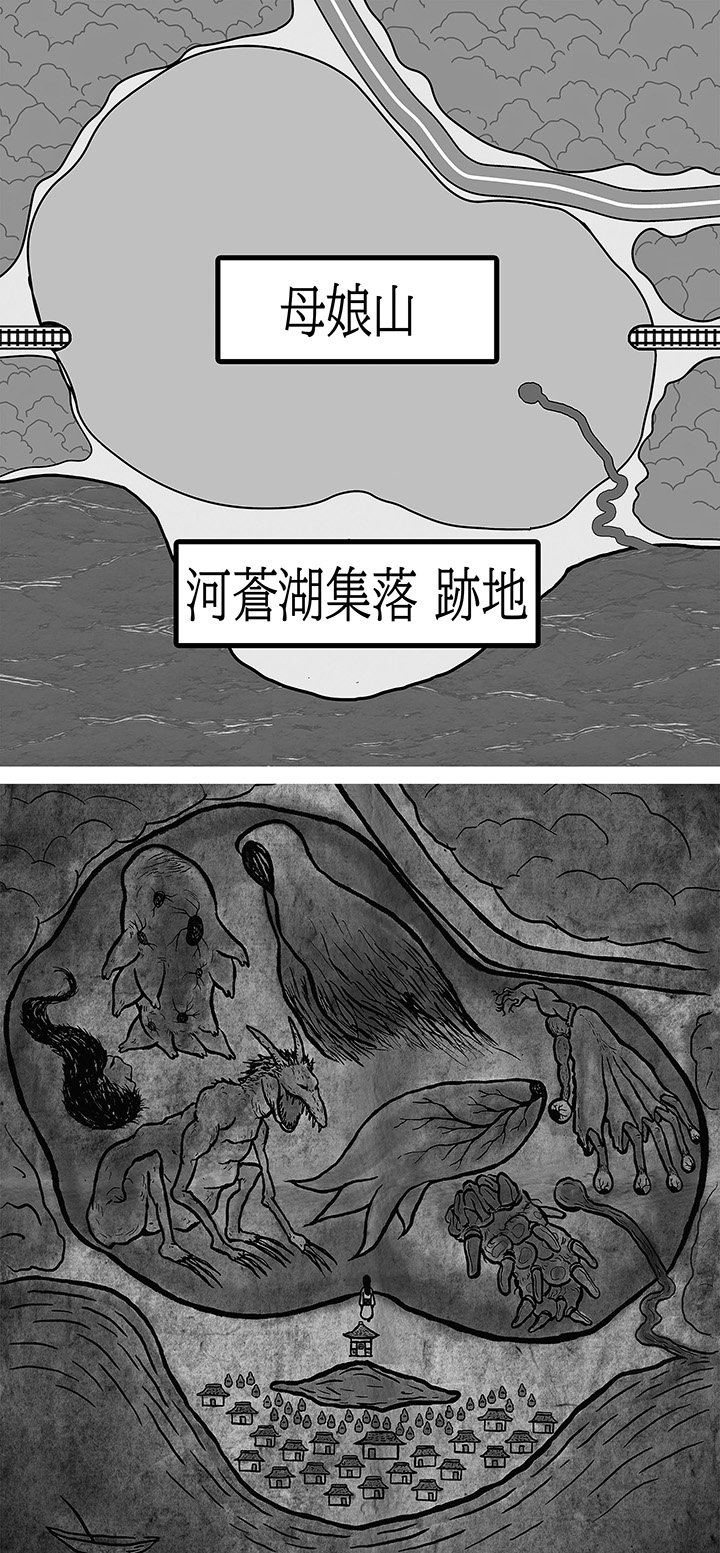 〇〇県〇〇市 〇〇地区 湖と沿岸の形状に類似点あり。山の位置関係に差異あり⇒誤差の範囲か。文献を調査⇒過去に人が住んだ記録なし。