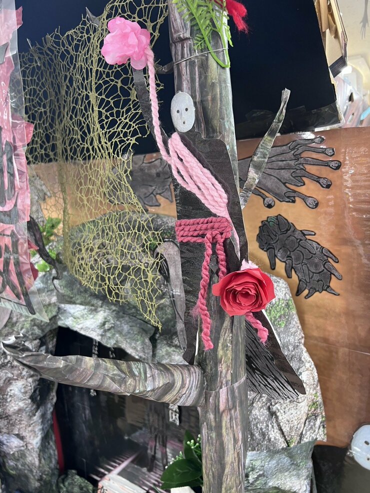 物語のキーとなる地図とトンネルをテーマにディスプレイを作成しました。トンネル内の人影が紅茶でエイジング加工した地図に投影されることで印象深いシーンを演出することが出来ました。次回作では是非安曇野を舞台に執筆してください。