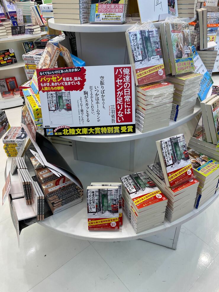 今回、特別賞を受賞した『俺達の日常にはバッセンが足りない』は、授賞式が行われた1月23日より、北陸三県および関東の一部地域の書店約120店舗にて、他の受賞作とあわせて大きく陳列されています。
