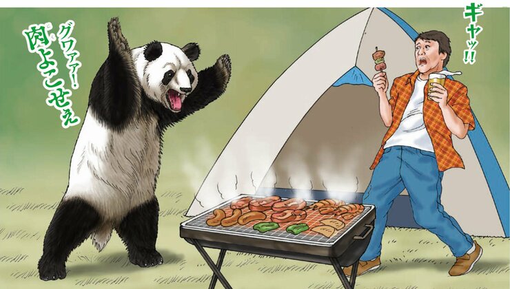 ある研究者が、パンダのいる山林にテントを張ってステーキを焼いていたら、なんとそこへパンダが現れ、ステーキを持って行かれてしまったそうです。研究者もこれにはびっくり。