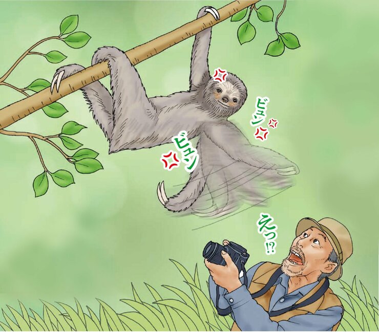 ナマケモノを捕まえようとしたり、不用意に近づくのは危険です。人間もそうですが、いきものも見かけによりません。