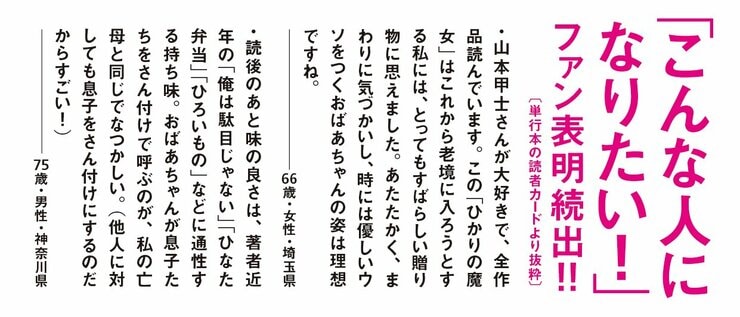 なんらかの騒動や事件を経て、自分を変えていく。山本甲士の多くの作品に共通するテーマは、この自己改革といっていいだろう。さらに付け加えれば、作者の存在を強烈に印象づけた『どろ』『かび』『とげ』の3部作の頃は、自己改革がダークな方向で表現されていた。だがその後、しだいに作風がライトなっていき、気持ちのいい自己改革の物語が読めるようになったのだ。もちろん最新刊となる本書も、明るい作品だ。なにしろタイトルからして『ひかりの魔女』なのだから。