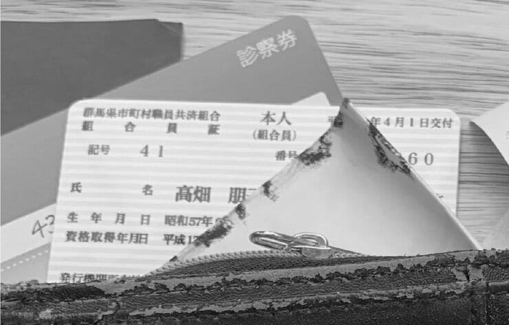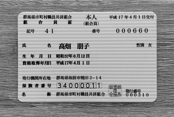 保険証。名前は「高畑朋子」。住所は、テレビに映っていた当時の報道と一致していた。